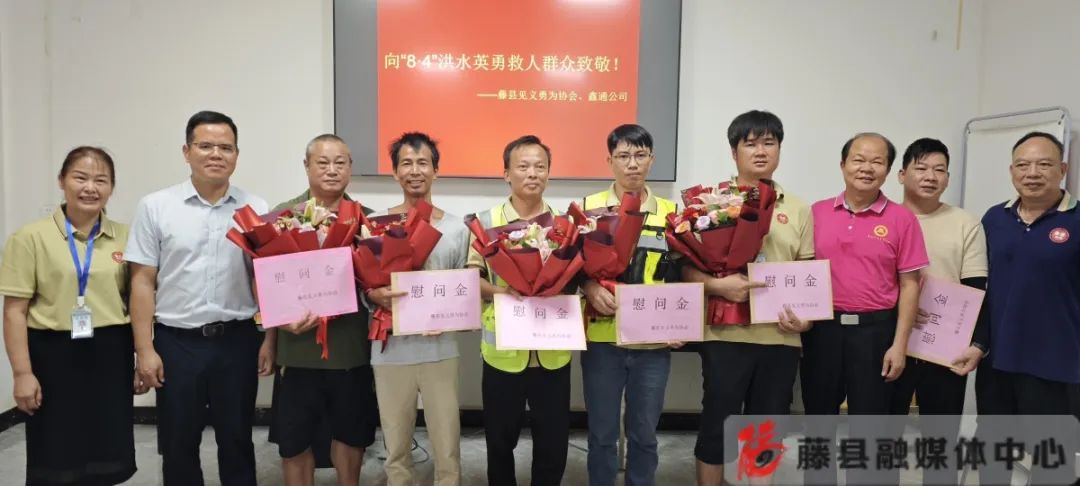 慰問現場,陳志金向吳緒乾等危難時刻挺身而出的勇士們致以崇高敬意,并送上了慰問品和慰問金。陳志金指出,吳緒乾等人在危急時刻挺身而出的擔當,正是中華民族"扶危濟困、見義勇為"傳統美德的生動寫照,更是新時代社會主義核心價值觀的鮮活實踐,為全社會樹立了榜樣。希望吳緒乾等人見義勇為的精神在潯江兩岸永遠傳承,讓藤縣大地處處綻放文明之花。