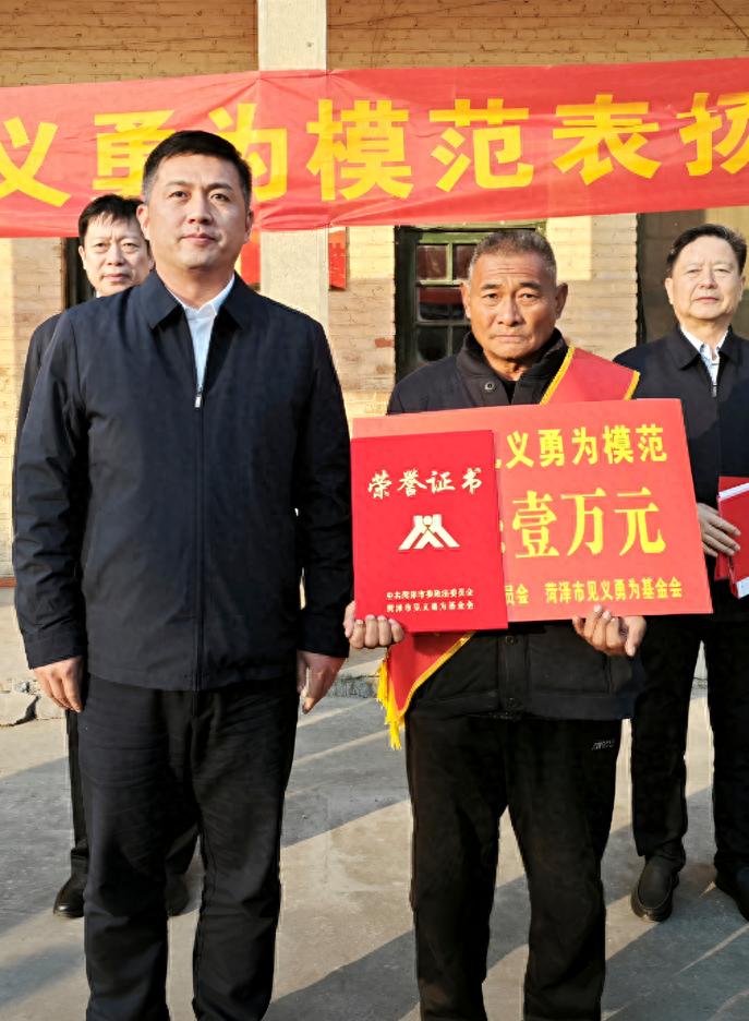 12月5日,菏澤市見義勇為模范頒獎儀式在巨野縣舉行。寒冬中跳入冰水救人的平民英雄張守穩、朱國進,分別獲頒“菏澤市見義勇為模范”證書、光榮牌及10000元獎金。
