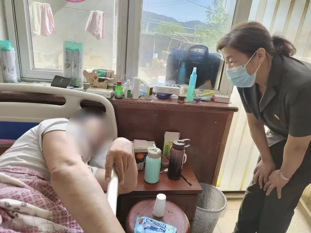 得知此事,王曉芳當即決定上門走訪。當她跟著母女倆走進那間低矮的平房時,一股混雜著藥味、霉味的氣息撲面而來。邢大爺蜷縮在靠窗的床上,生活完全不能自理,枯瘦的手臂和腿上滿是褥瘡??吹接腥诉M來,他艱難地喘了口氣,喉嚨里發出微弱的呻吟。妻子坐在床邊,一邊抹淚一邊給他掖了掖被子:“他這病一天也離不開人,藥也斷不起……”