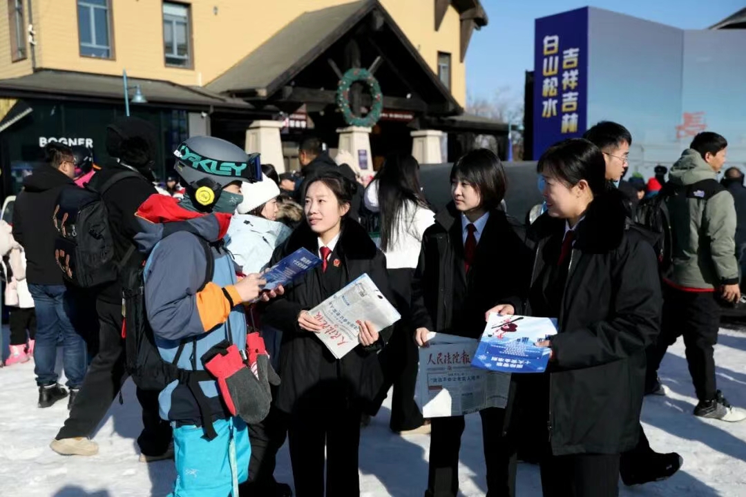 吉林省地處世界冰雪“黃金緯度帶”,冰雪資源得天獨厚。為認真落實省委、省政府關于推動冰雪經濟高質量發展決策部署,切實增強游客法治意識,營造文明、安全、和諧的旅游環境,近日,吉林市豐滿區人民法院松花湖人民法庭干警積極行動,主動作為,走進中旅松花湖度假區,為來自四面八方的游客提供普法服務。