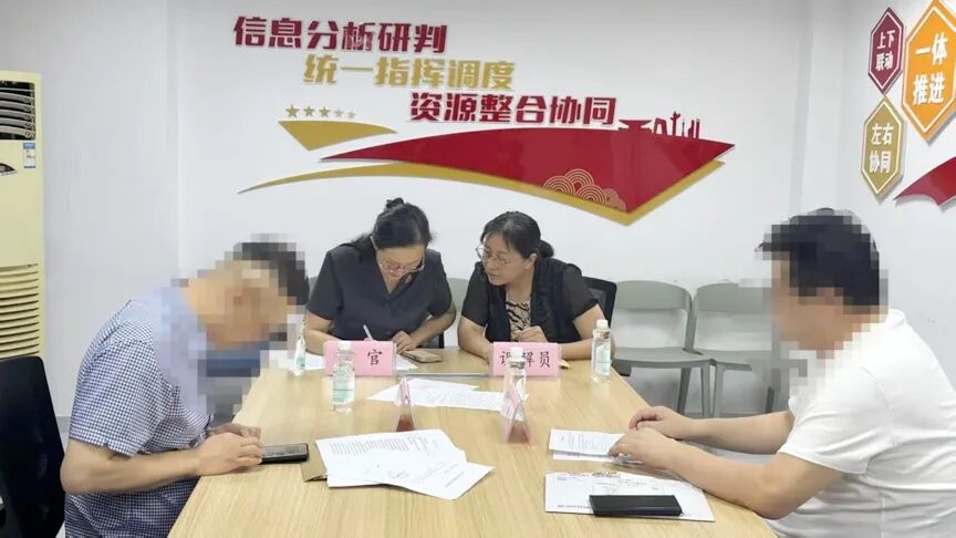 在東山街道綜治中心的調(diào)解室里,法官、調(diào)解員與當(dāng)事人圍坐一堂,傾聽雙方的訴求與委屈。
