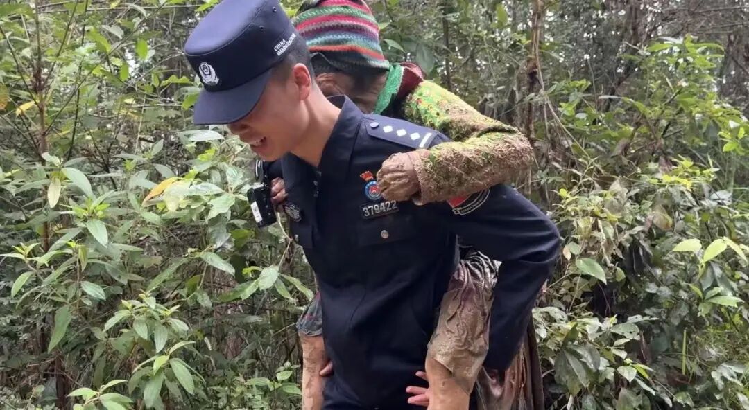 “我在木邦上去的泥巴路上看到一位老人,和你們發的尋人啟事中的特征很像!”上午9時許,一位熱心群眾的來電帶來了關鍵線索。盧上吉當即與同事驅車趕往現場,可連續的陰雨讓山路變得泥濘濕滑,車輛無法繼續前行。他們果斷背起應急裝備,踩著泥漿向山頂方向奔去。